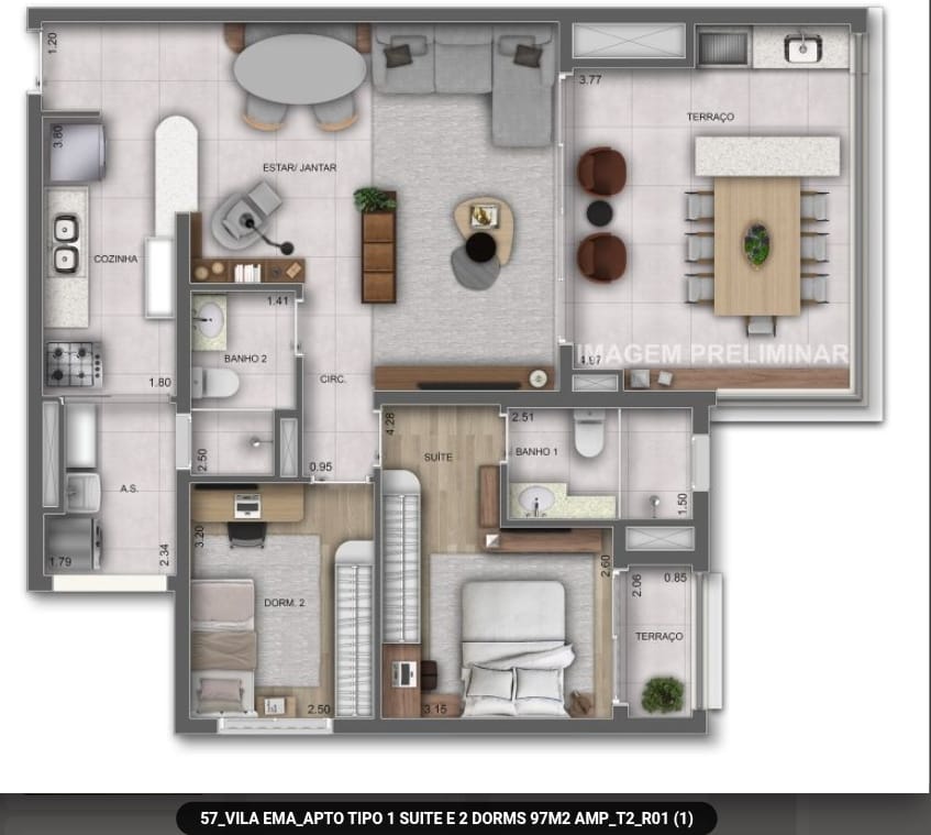 Plantas com 90 e 97m²- 3 dormitórios sendo 1 suíte, 121m² com 3 suítes, opção com 1 ou 2 vagas de garagem cobertas. Opção de cobertura Penthouse com 3 suítes. Entrega em 02/2029.